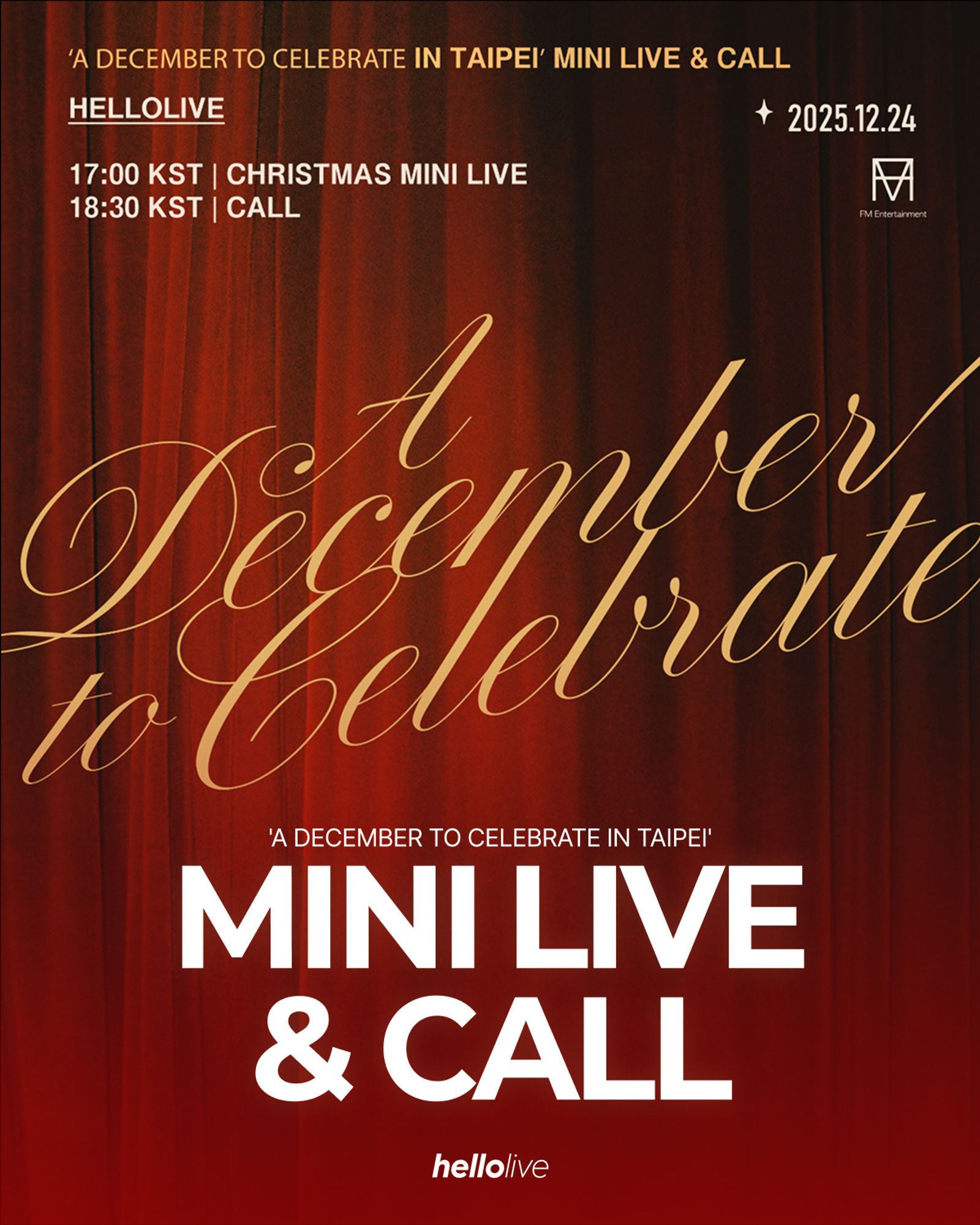 ⏰ MINI LIVE DATE 2025. 12. 24 (Wed) 17:00 KST ※ Note: MINI LIVE sessions cannot be replayed. 🎞 RUNNING TIME 60minutes 📞 VIDEO CALL DATE 2025. 12. 24 (Wed) 18:30 KST * TEST CALL DATE : 2025. 12. 24 (Wed) 16:00 KST 🎫 TICKET OPEN 2025. 12. 03 (Wed) 18:00 KST ~ * VIDEO CALL TICKET OPEN 2025. 12. 07 (Sun) 18:00 KST ~ 🔍 Hosted / Organized FM Entertainment