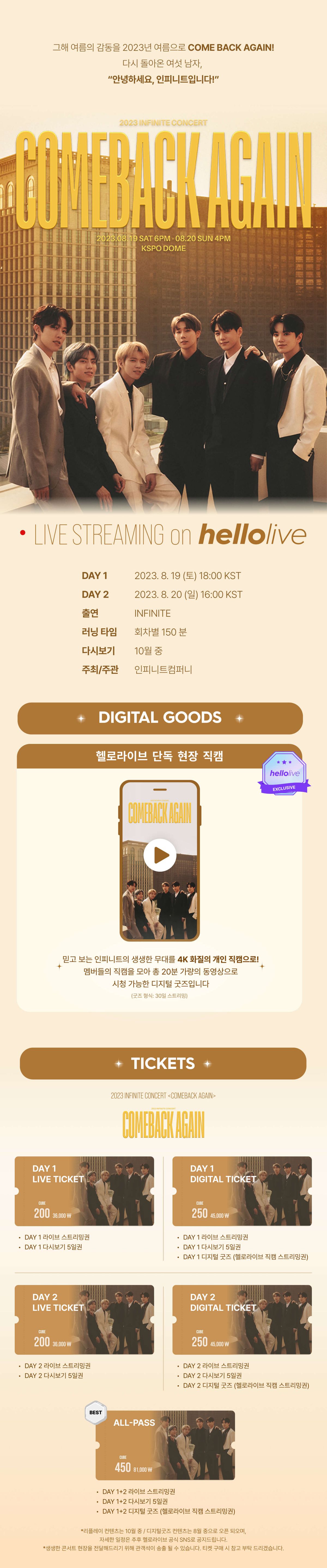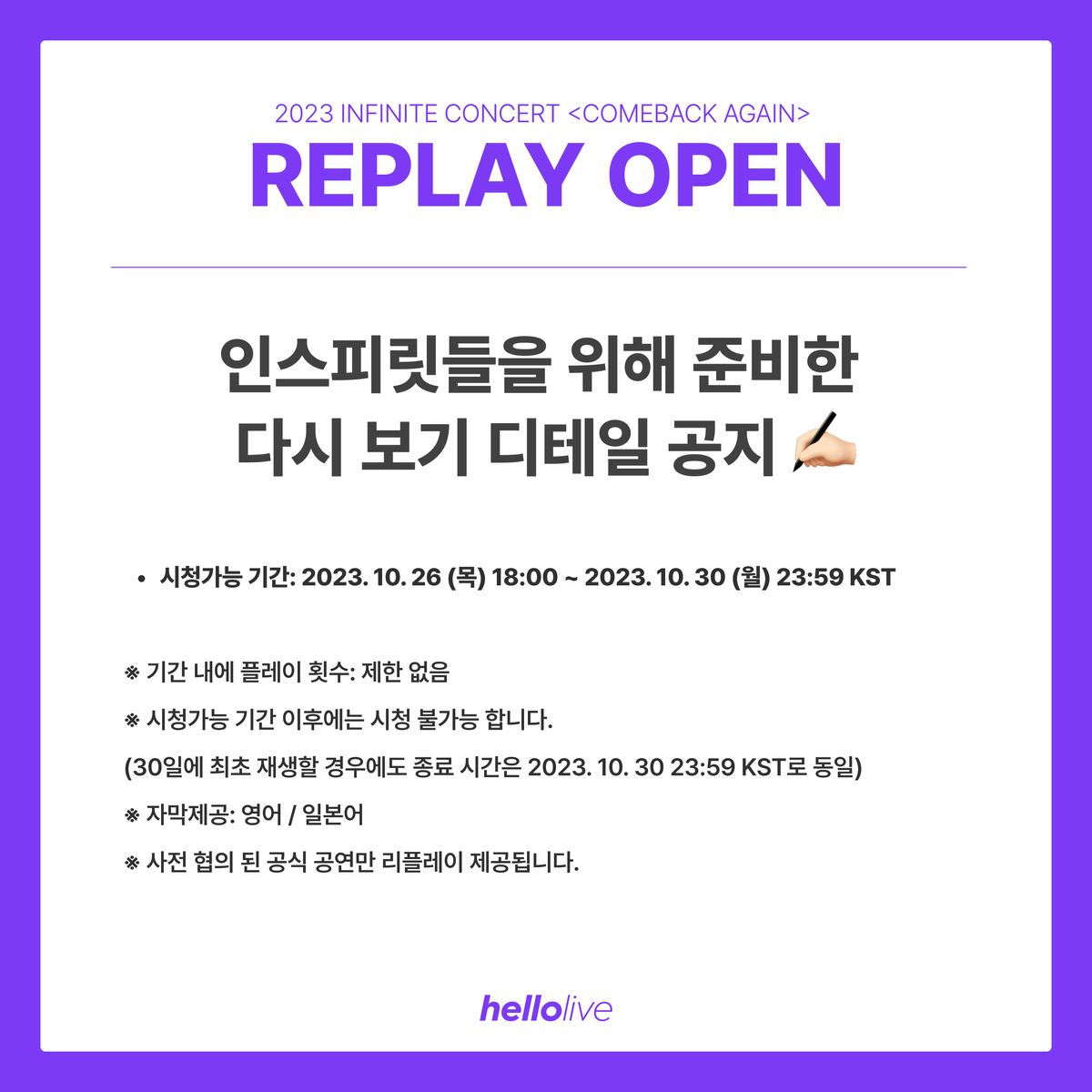 2023 INFINITE CONCERT <COMEBACK AGAIN>은 해당 회차의 콘서트만 실시간 생중계 및 다시보기가 가능하며, 전세계 인스피릿분들은 어디서든 시청 가능합니다!
