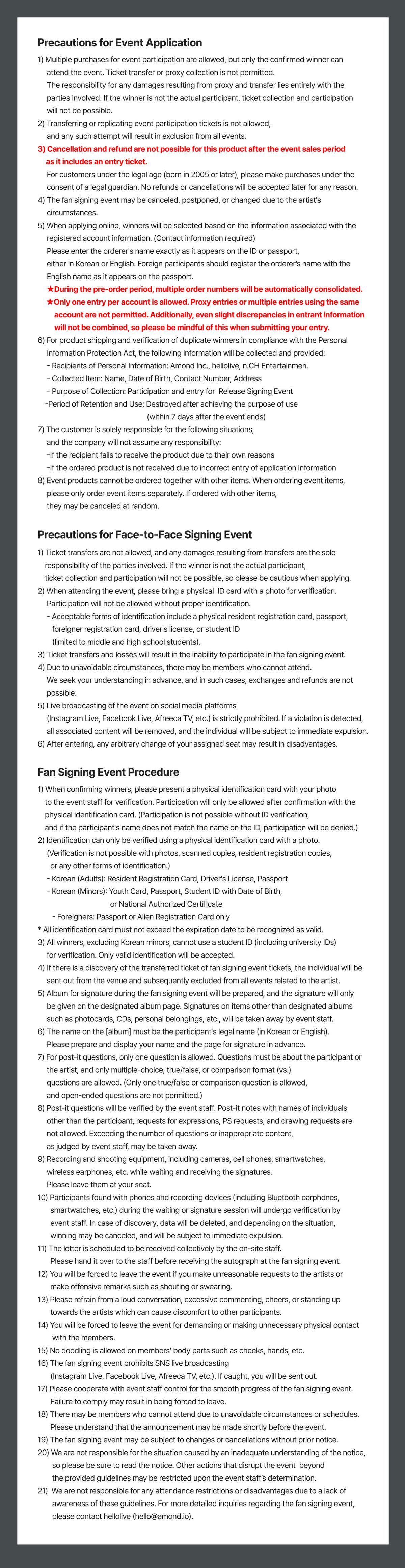 If you want to apply for an Offline Fan Signing Event, you must purchase and apply on hellolive. (If you purchase through helloliveShop, you will not be eligible to participate in the event, regardless of the purchase quantity.) *The type of album is random deliver*