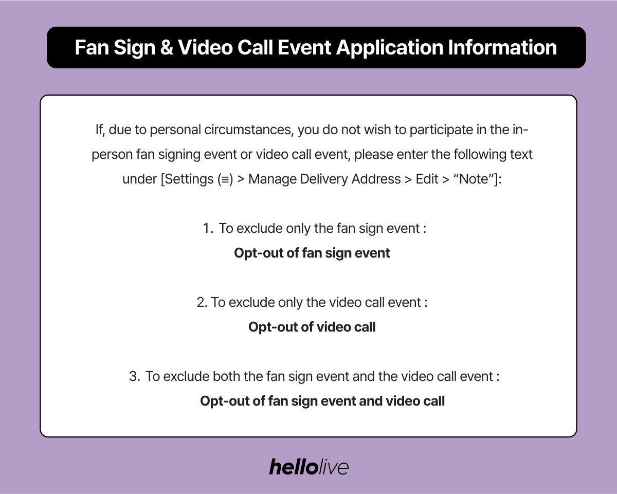4) VIDEO CALL 이벤트는 응모 시 개인정보 수집 동의 절차를 통해 수집된 hellolive 가입 계정으로만 진행 가능합니다. (응모 후 변경 불가)