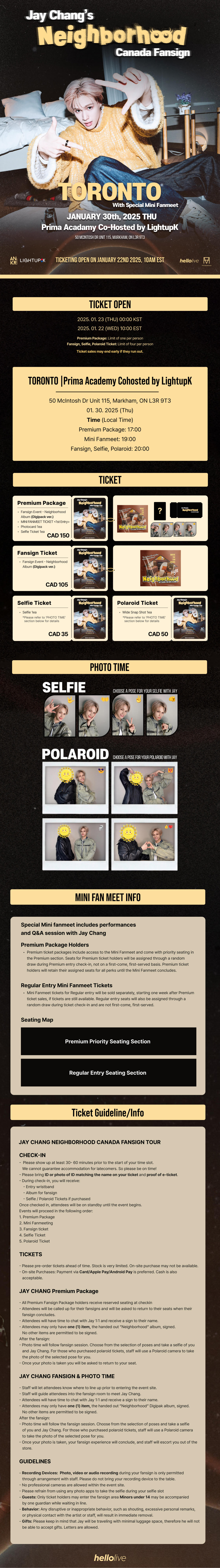 🎫 TICKET OPEN 2025. 01. 22 (WED) 10:00 EST ~ ☀️ EVENT Info. - Location: Prima Academy Cohosted by LightupK - Date&Time: 01. 30. 2025 (Thu) Premium Package: 17:00 Local Time Mini Fanmeet: 19:00 Local Time Fansign, Selfie, Polaroid: 20:00 Local Time