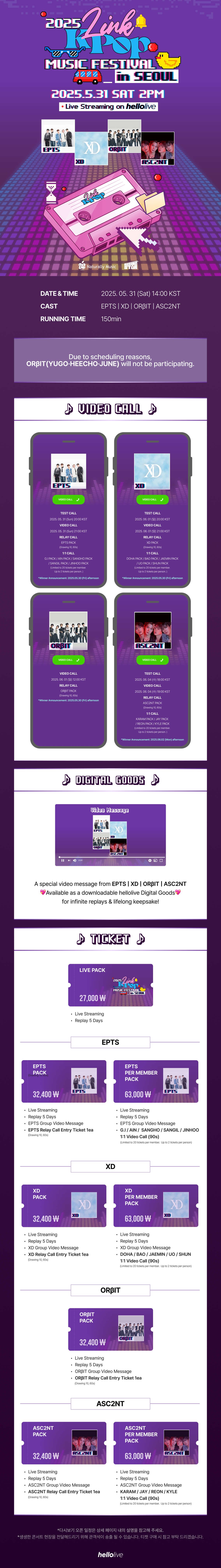 Video calls are available only on hellolive mobile app. *The ORβIT Relay call is scheduled to be held via Zoom (further details will be provided individually to the winners via email at a later date). Video Call ticket information is automatically registered based on the nickname and applicant details at the time of purchase or selection. Changes cannot be made afterward. For essential updates, please contact customer service.