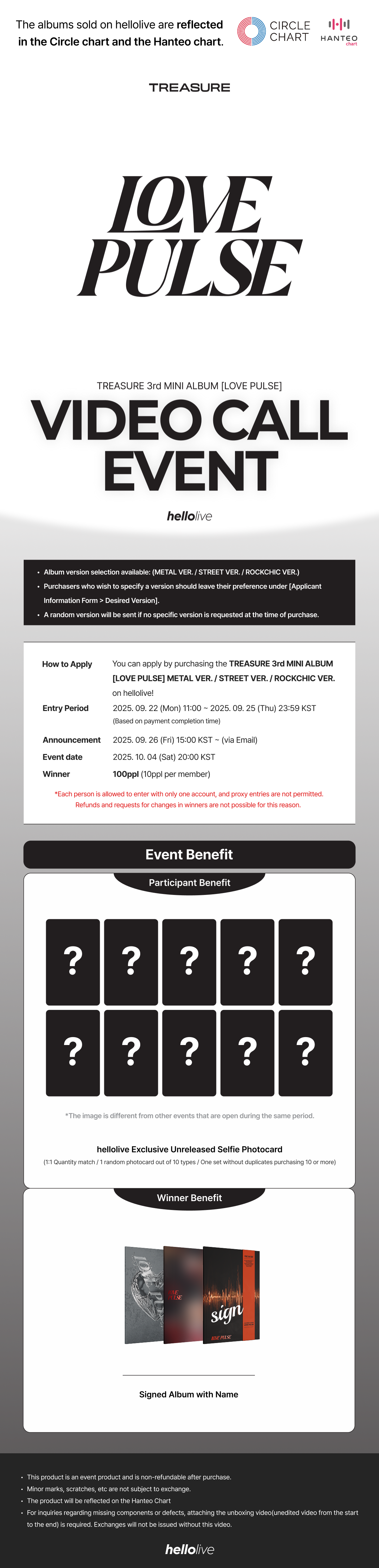 - Purpose of collection: Application for the fansign event celebrating the release of TREASURE 3rd MINI ALBUM [LOVE PULSE]