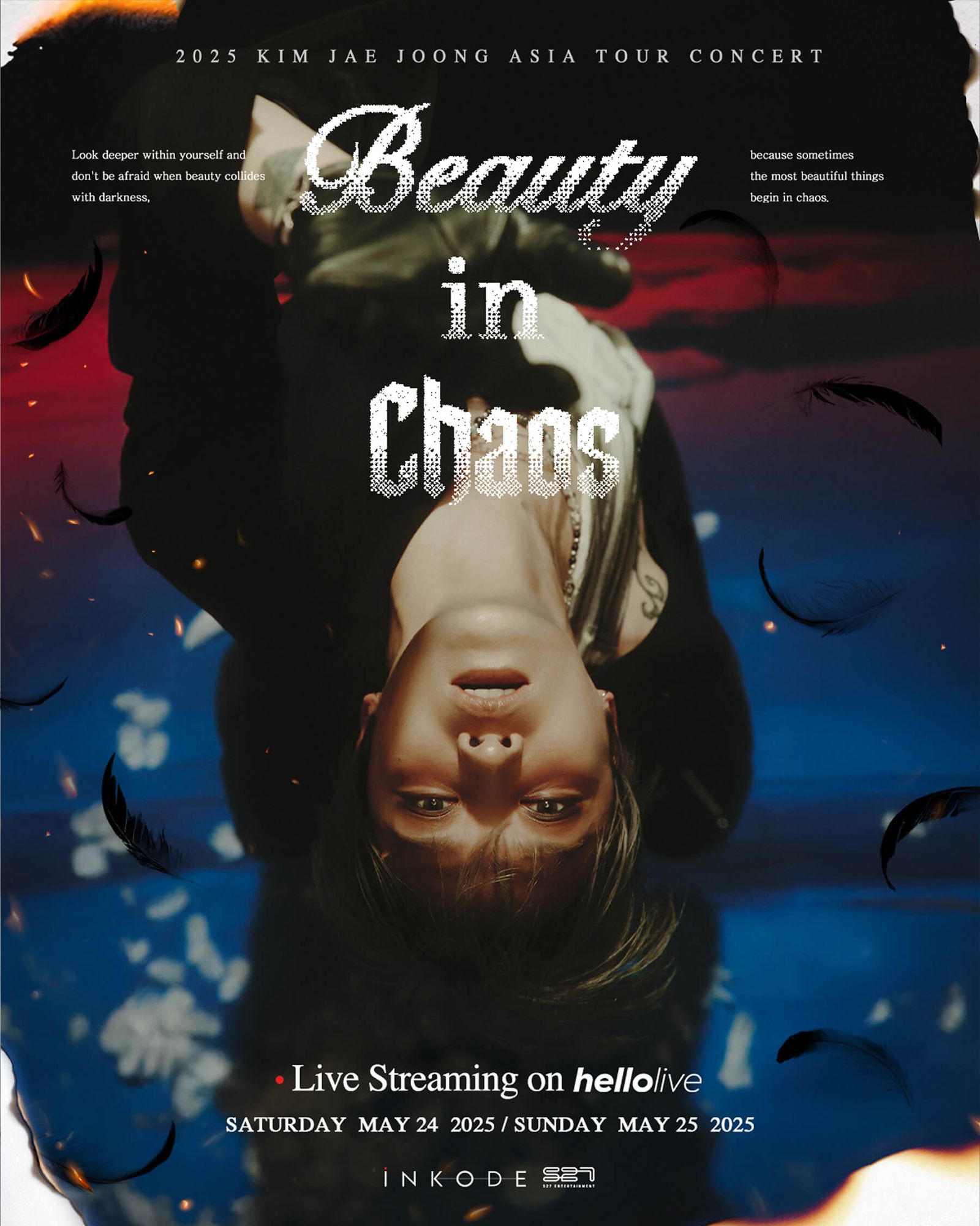 ⏰ 공연일시 DAY1: 2025. 05. 24 (토) 18:00 KST DAY2: 2025. 05. 25 (일) 16:00 KST 🎞 러닝 타임 120분 🎫 티켓 판매 2025. 05. 02 (금) 18:00 KST ~ 2025. 06. 08 (일) 23:59 KST 🎁 hellolive 특별 이벤트 & 굿즈 - 전체, 티켓별 126번째 구매자에게 김재중 친필 사인+낙서 폴라로이드 증정! - ‘Beauty in Chaos’ Album & JJCAM & 공연 착장 포토카드✨ 🔍 주최/주관 iNKODE / S27 ENTERTAINMENT