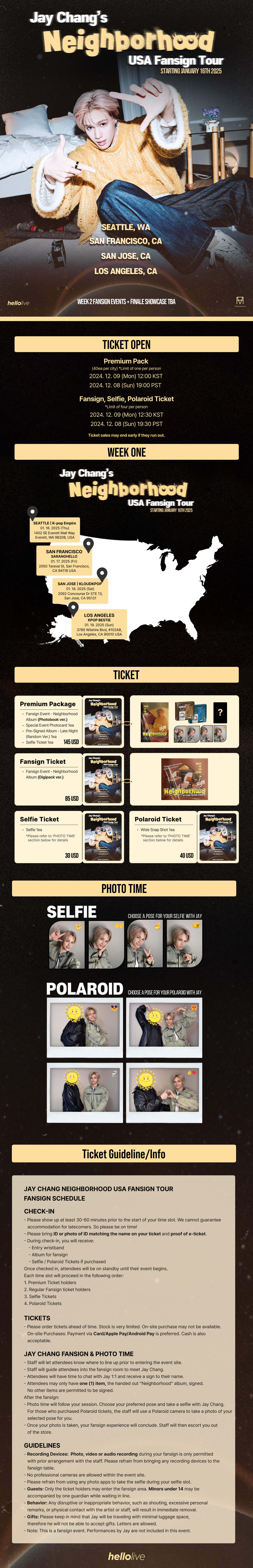 🎫 TICKET OPEN - Premium Pack: 2024. 12. 08 (Sun) 19:00 PST~ - Fansign, Selfie, Polaroid Ticket: 2024. 12. 08 (Sun) 19:30 PST~ ☀️ EVENT CITY > SEATTLE > SAN FRANCISCO > SAN JOSE > LOS ANGELES 📢 When making a purchase through the app, payment is available only with cubes. If you wish to pay by card, please use the web platform to complete your purchase.