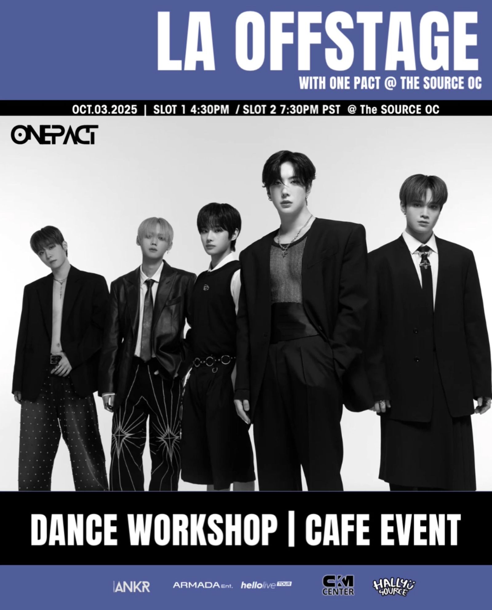 🕺 Dance Workshop & Cafe Event ☕️ with ONE PACT in Los Angeles🤍 ✅ Los Angeles, CA, USA — OCT 3, 2025 ⏰ Dance Workshop and Cafe Event will be held at the same time. - SLOT 1 > 16:30 ~ 17:30 - SLOT 2 > 19:30 - 20:30 📍 LOCATION The Source OC (plaza) (6940 Beach Boulevard Buena Park, CA 90621 United State) 🎫 TICKET OPEN SEP 29, 2025 | 12:00 PT / 14:00 CT / 15:00 ET ~ OCT 03, 2025 | 00:00 PT / 02:00 CT / 03:00 ET 🔍 Hosted/Organized ARMADA ENT / hellolive