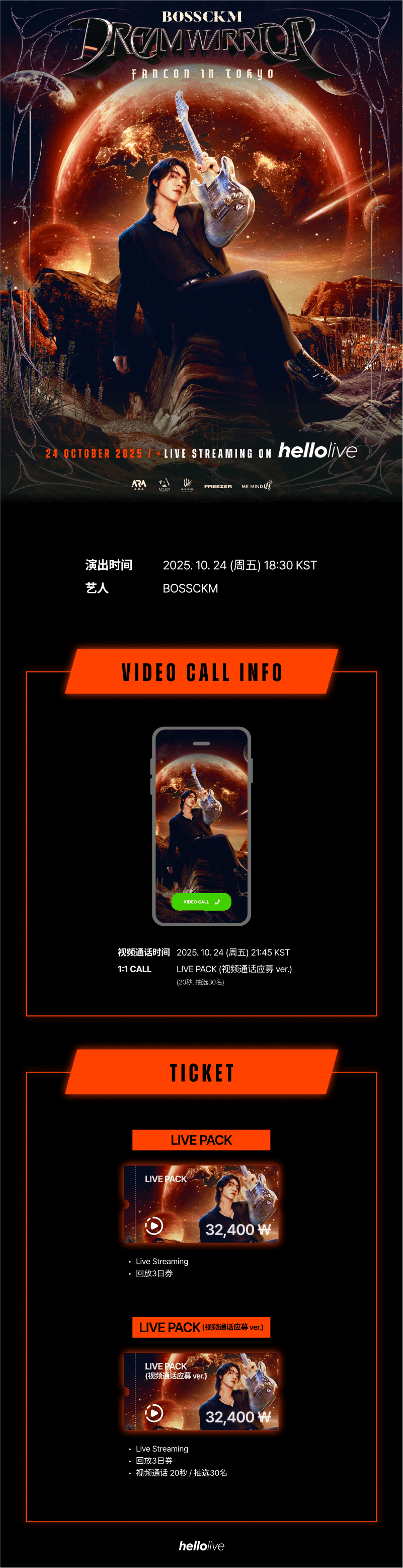 🌟 本次直播仅播放事先协商的官方演出,开始与结束时间可能根据现场情况有所变动。🌟 特典内容可能因内部情况有所变更,因此恕不接受因此原因产生的退款或更换请求。